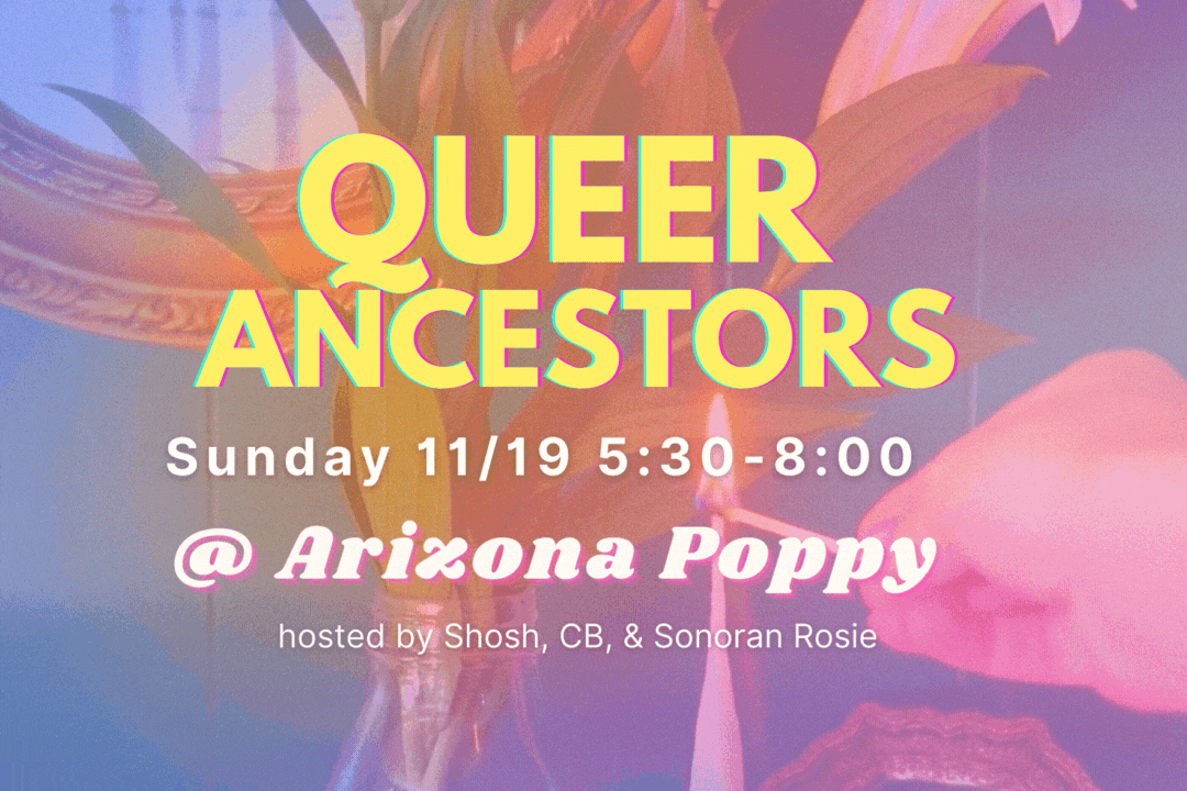 Shosh & CB invite you to join them on a journey of queer ancestral veneration and healing. together we will embark on a journey to explore our queer lineage and honor our queer & trans ancestors through community ritual. In this sacred space, we will celebrate the lives of those who have passed and grieve their absence. Let’s come together and raise the spirits of our cherished ancestors as one.